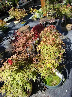 Poleg macesnov v gorah se tudi doma bonsaji, predvsem javorji, šopirijo v najlepših barvah.